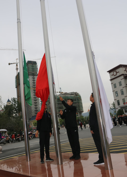 下午2点半,伴随着雄壮的国歌,医院3名退役军人肩扛鲜艳的五星红旗迈着铿锵有力的步伐走向升旗台,开始了升国旗、奏国歌仪式,参赛运动员由6个战队组成,他们个个意气风发、精神抖擞、活力四射,用自信的笑容展现新时代白衣天使的良好精神风貌。升旗仪式完毕,达局长代表县卫健局及医院领导班子向运动会的召开表示热烈的祝贺!他指出:近年来,在县委、县政府的正确领导下,在社会各界的大力支持下,眉县人民医院完成了历史性的搬迁,全院广大医务工作者,认真践行不忘初心、勇于担当,以护航群众健康为职责,以打造“健康眉县”为目标,通过思想纪律作风整顿和专项行动开展,不断强化“方便就医、有效就医、明确就医”等工作措施,医院干部职工精神面貌焕然一新,服务态度明显改善,医疗水平不断提高,以自己实际行动重塑了县人民医院在广大群众心目中的良好形象,医院呈现出空前良好发展态势。医院举办这次运动会,旨在通过体育这个平台,丰富职工文化生活,增强职工身体素质,大力弘扬体育运动的拼搏精神,超越精神与合作精神,努力造就一支体魄强健、品德高尚、业务精良,充满生机与活动的干部职工队伍。希望全体运动员本着成绩与风格同在,友谊与欢迎并存的原则,以饱满的激情,昂扬的斗志,勇于拼搏的信念投入到本届运动会中去,赛出友谊、赛出水平、赛出风格,以优异的成绩展示医务工作者蓬勃向上的时代风采。
