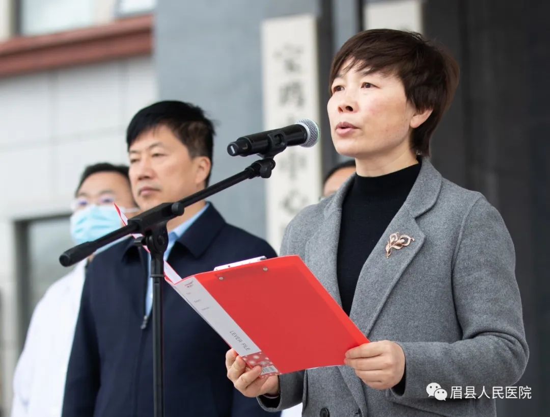 启动仪式上,李倩代表县委、县政府向应邀参加义诊活动的市中心医院专家教授表示热烈欢迎,向长期以来关心和支持眉县卫生健康事业发展的各位专家教授表示衷心感谢。李倩指出,近年来眉县卫健事业蓬勃发展、蒸蒸日上,医共体经验做法受到中省市肯定,县人民医院服务能力大幅提高、先后进入国家卫生健康委第二批符合县级医院医疗服务能力推荐标准名单、国家“千县工程”名单,今年3月被宝鸡市卫健委纳入三级综合医院管理,群众就医感受明显改善。她强调,这些成绩的取得,离不开上级医院的鼎力支持,更离不开全院干部职工努力拼搏。她希望,眉县人民医院要珍惜这次难得的机会,紧盯三级医院创建目标,主动加强与市中心医院 的对接联系,不断提升业务能力优化服务水平。县健康共同体总院要立足新起点,通过深化医保支付改革、建立健全分级诊疗机制等一系列举措,实现医改新作为。